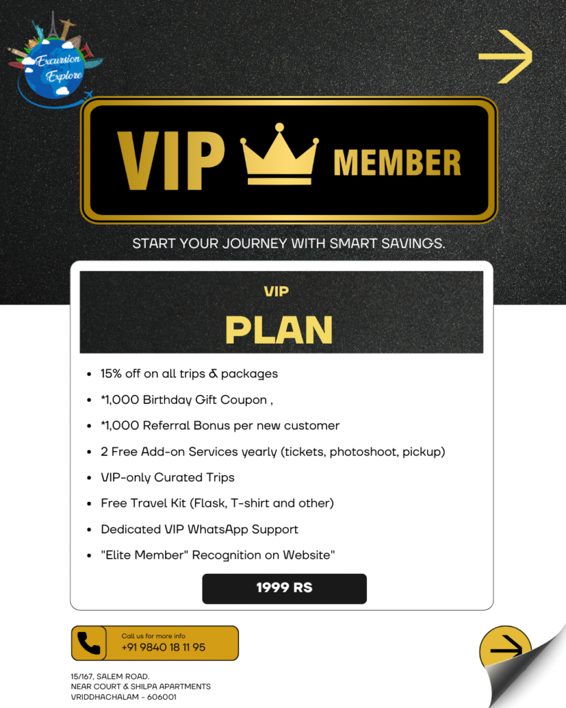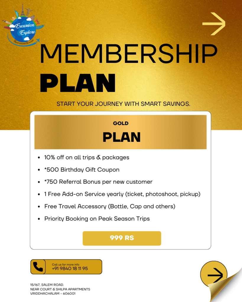 With customized packages, exclusive Silver / Gold / VIP memberships, and trusted 24/7 support, Excursion Explore is your perfect travel partner. Let us handle the details while you enjoy the adventure.
